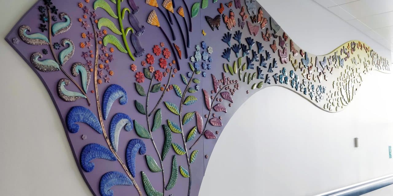 'Weaving Stories', 'Crossing Country' and 'Knitting Together' are three separate artworks on three floors of the new Outpatients services in Hampson House for the Rotunda Hospital in Dublin. They connect people and places through images of fabric, poetry, rhymes and patterns.